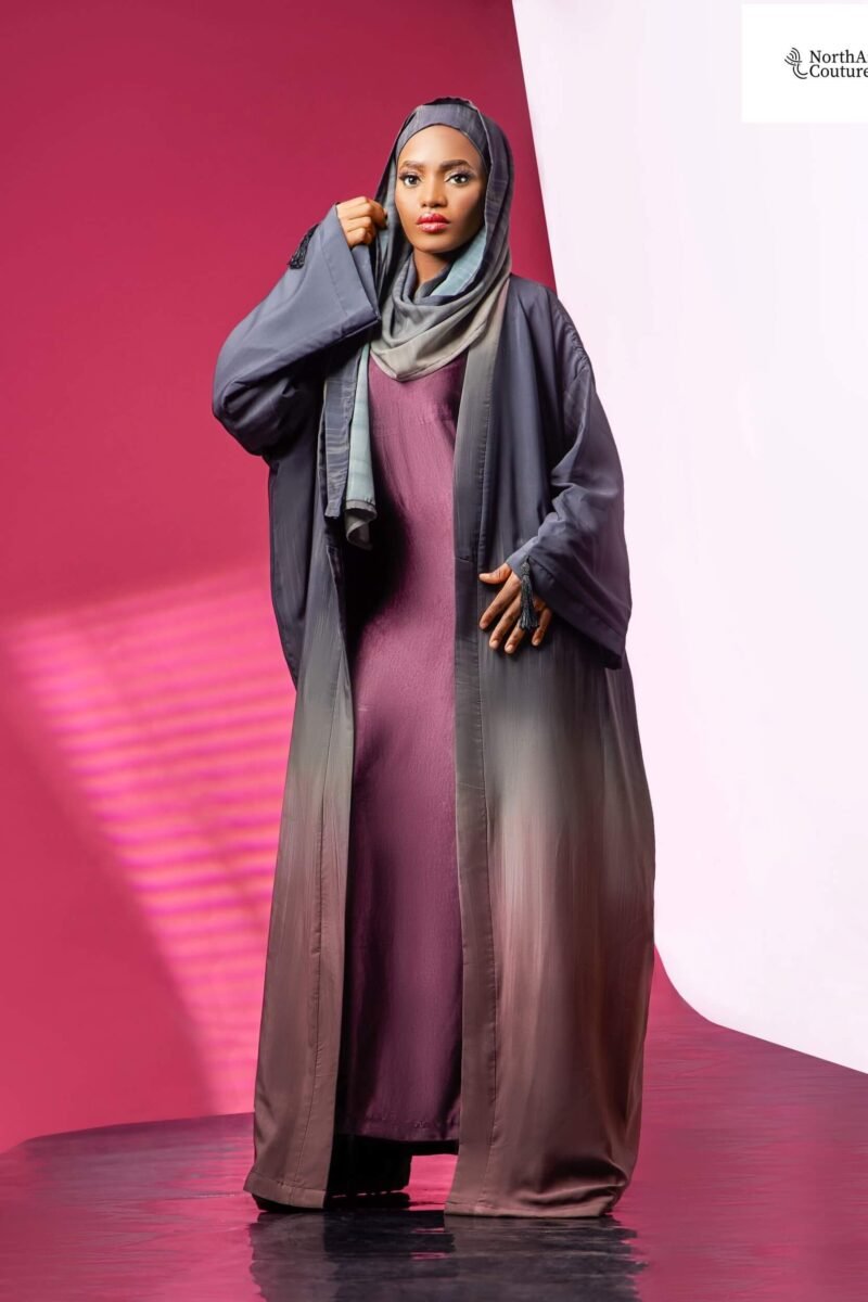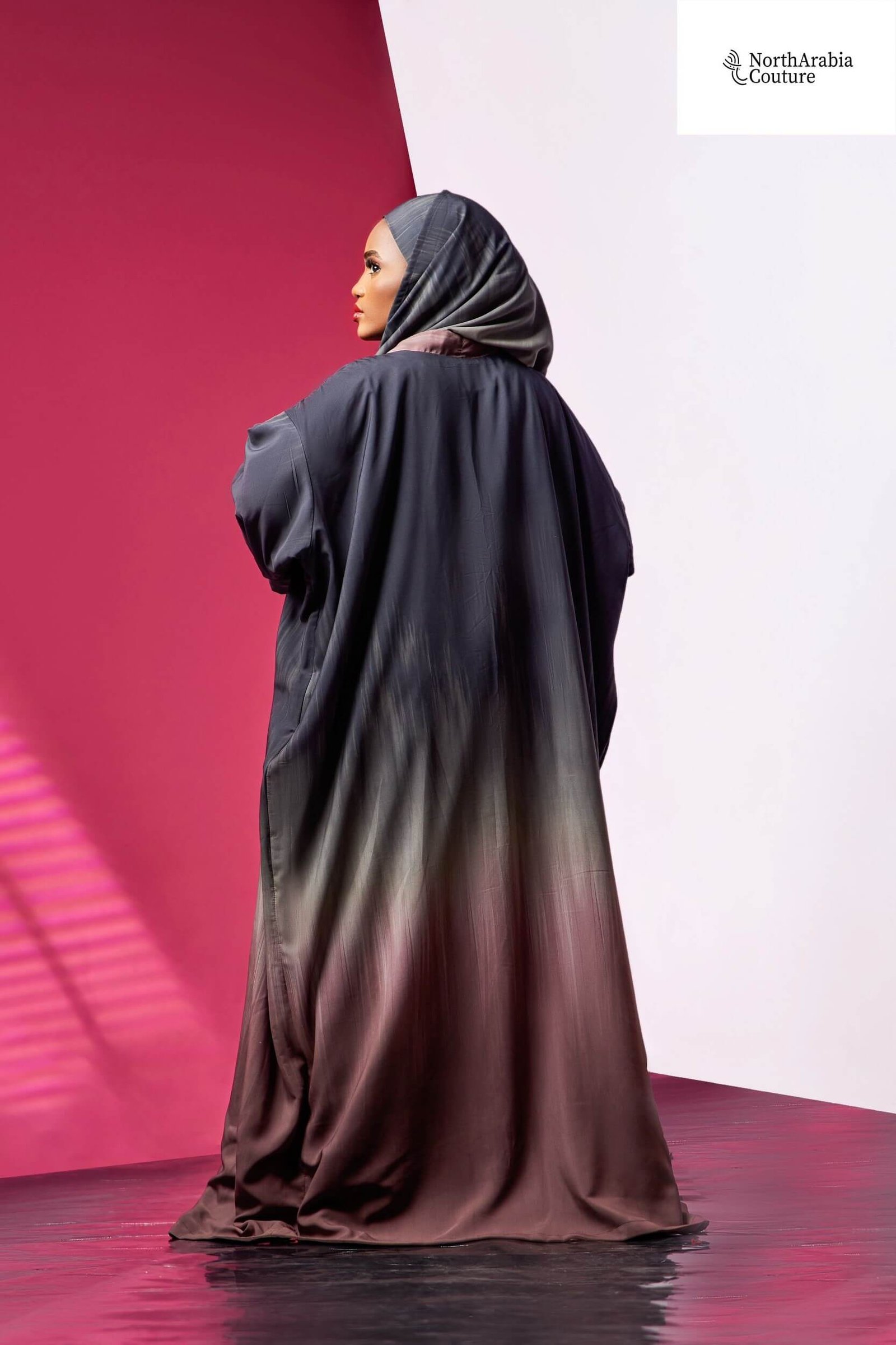 A beautiful silky abaya that drapes so luxuriously. Blend of colors gives you options for styling. For the bold and gracious lady. It comes with an inner and a veil.